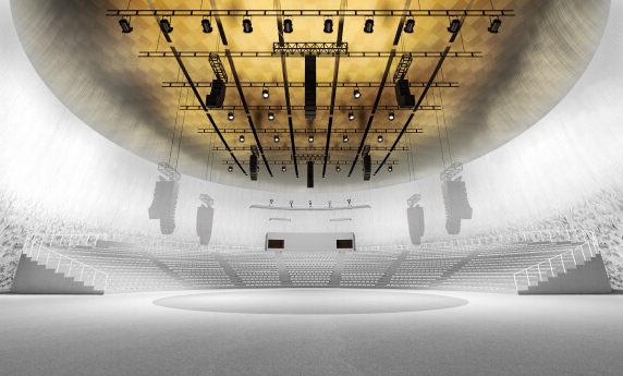 由株式會社伊東豐雄建築設計事務所設計,那大型、金光閃閃的圓形屋頂和從大地上升起的生命力量,成為整個世博會場地的象徵。圓形劇場融合了觀眾和舞台,包裹在質感純白的布料中,創造出一個象徵「我們生活的美好未來」的節慶空間。世博期間將在此舉辦音樂、戲劇等展演活動。