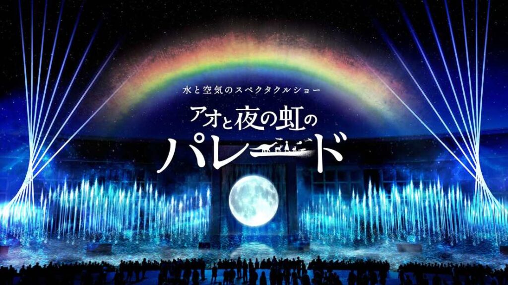 來逛2025萬博,記得留到晚上!水廣場大約300座噴泉,於舞台中心,構建一個宏偉的「水幕」,將結合光影與音效,打造一個約200米寬、約60米深,展演面積約8,800平方米的巨大舞台空間,打造出宛如夢境般的壯觀水舞秀「AO與夜晚彩虹的遊行(アオと夜の虹のパレード)」。此外,會場內也有其他裝置藝術,EXPO 展演廳的外牆也會有光雕投影喔!