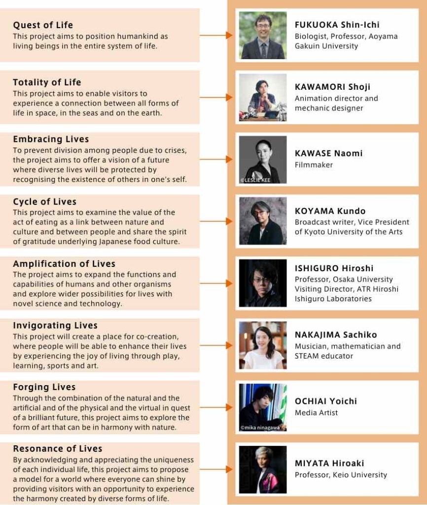 博覽會將展示由150個國家和25個國際組織,以及來自全球的公司、非政府組織、非營利組織和公民團體等提供實現可持續發展目標及其未來願景。為此,我們將組織由八位各領域的頂尖創作者開發的主題項目,自創8大核心主題,從8個不同面向,討論未來社會為了達成 SDGs 目標,所需要的共創力。